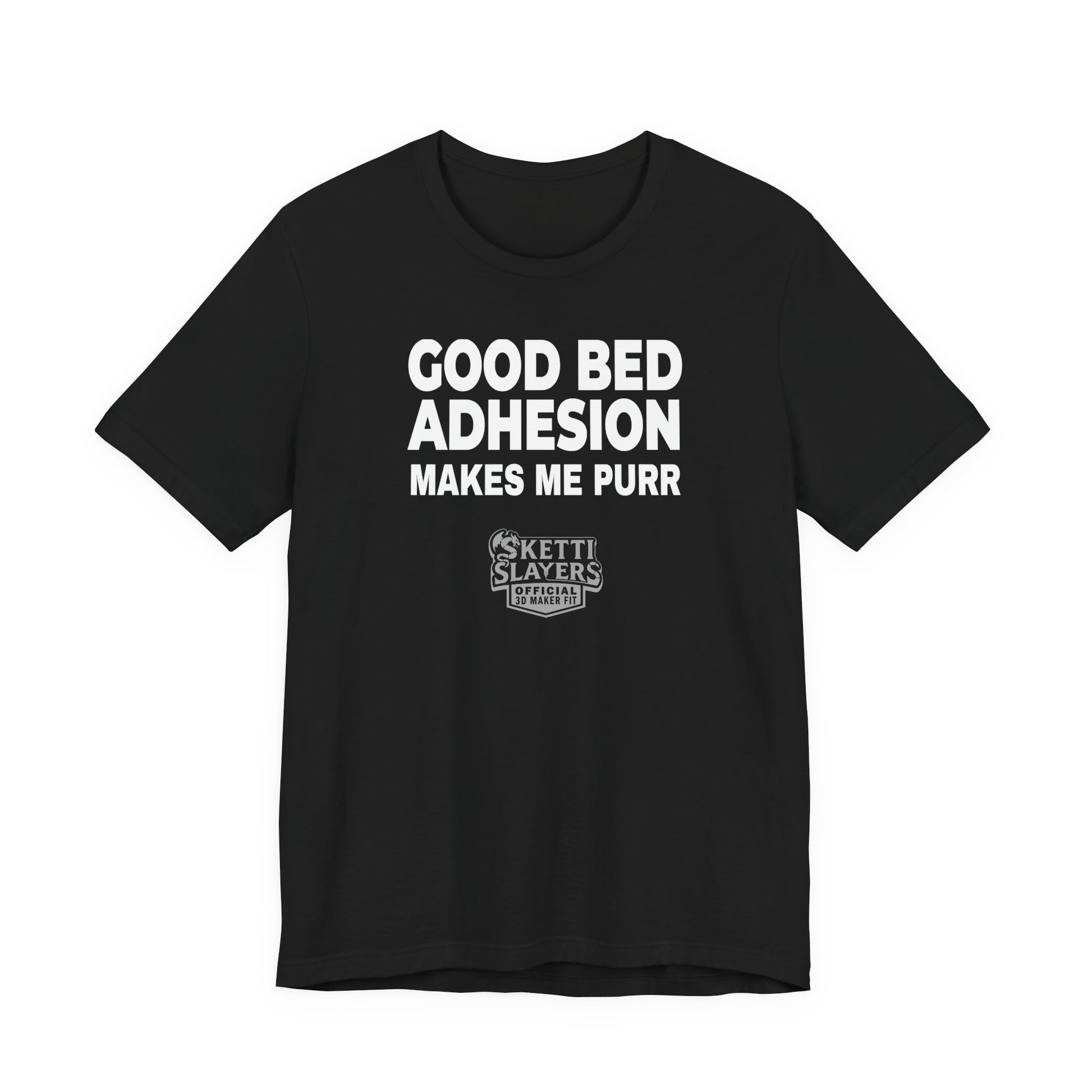 SkettiSlayers – Good Bed Adhesion Makes Me Purr 3D Printing T-Shirt